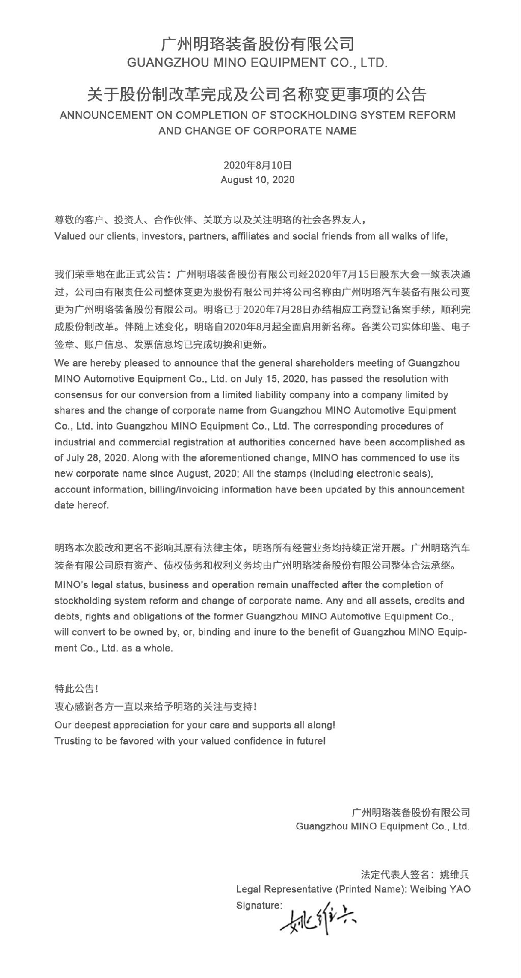 明珞关于股份制改革完成及公司名称变更事项的公告
