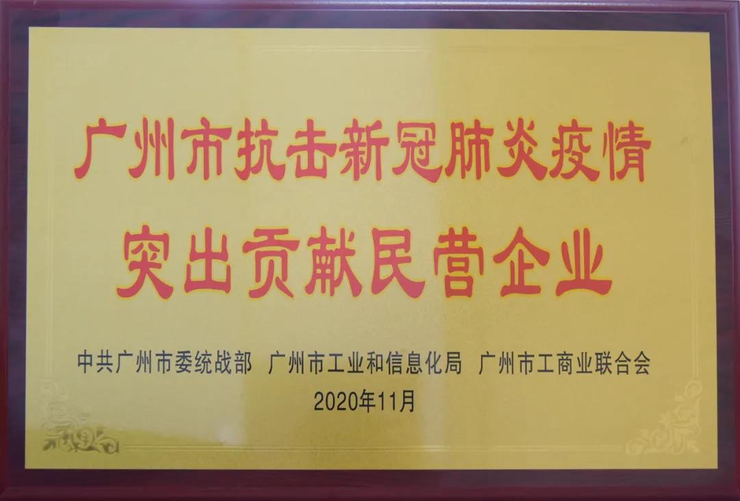 广州市抗击新冠肺炎疫情突出贡献民营企业荣誉牌匾