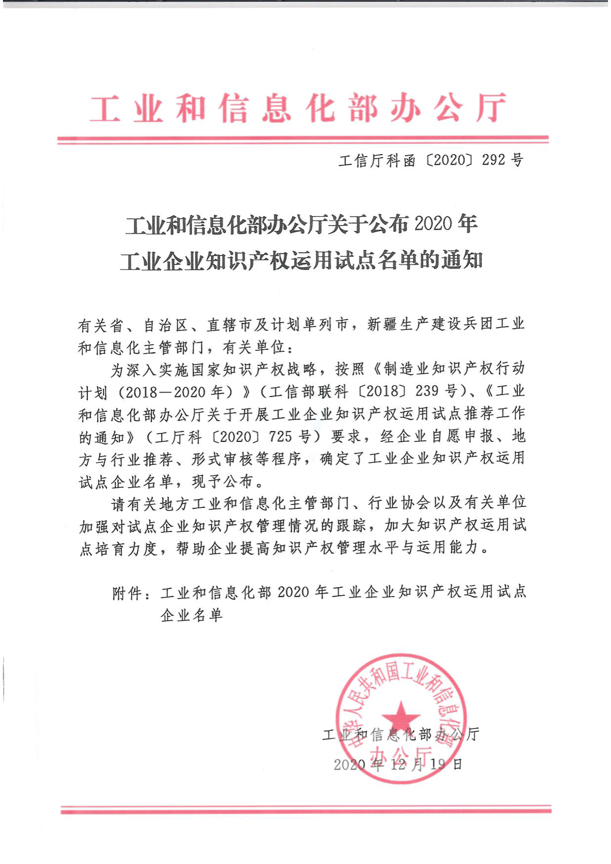 明珞入选国家工信部2020年工业企业知识产权运用试点名单